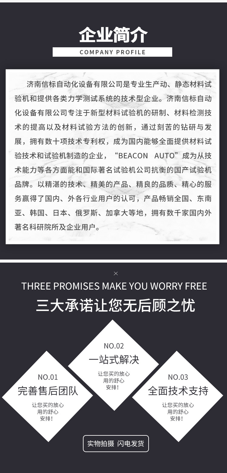 濟(jì)南信標(biāo)自動(dòng)化設(shè)備有限公司主要生產(chǎn):動(dòng)靜態(tài)萬(wàn)能疲勞試驗(yàn)機(jī),接骨板彎曲試驗(yàn)機(jī),縫合線拉伸疲勞試驗(yàn)機(jī),髖膝關(guān)節(jié)磨損試驗(yàn)機(jī),電子萬(wàn)能試驗(yàn)機(jī)、液壓萬(wàn)能試驗(yàn)機(jī)、巖石三軸、四軸,電液拉力試驗(yàn)機(jī),材料試驗(yàn)機(jī),高低溫蠕變,高低頻疲勞,拉伸、扭轉(zhuǎn)、杯突等二十多個(gè)系列兩千多個(gè)的品種。